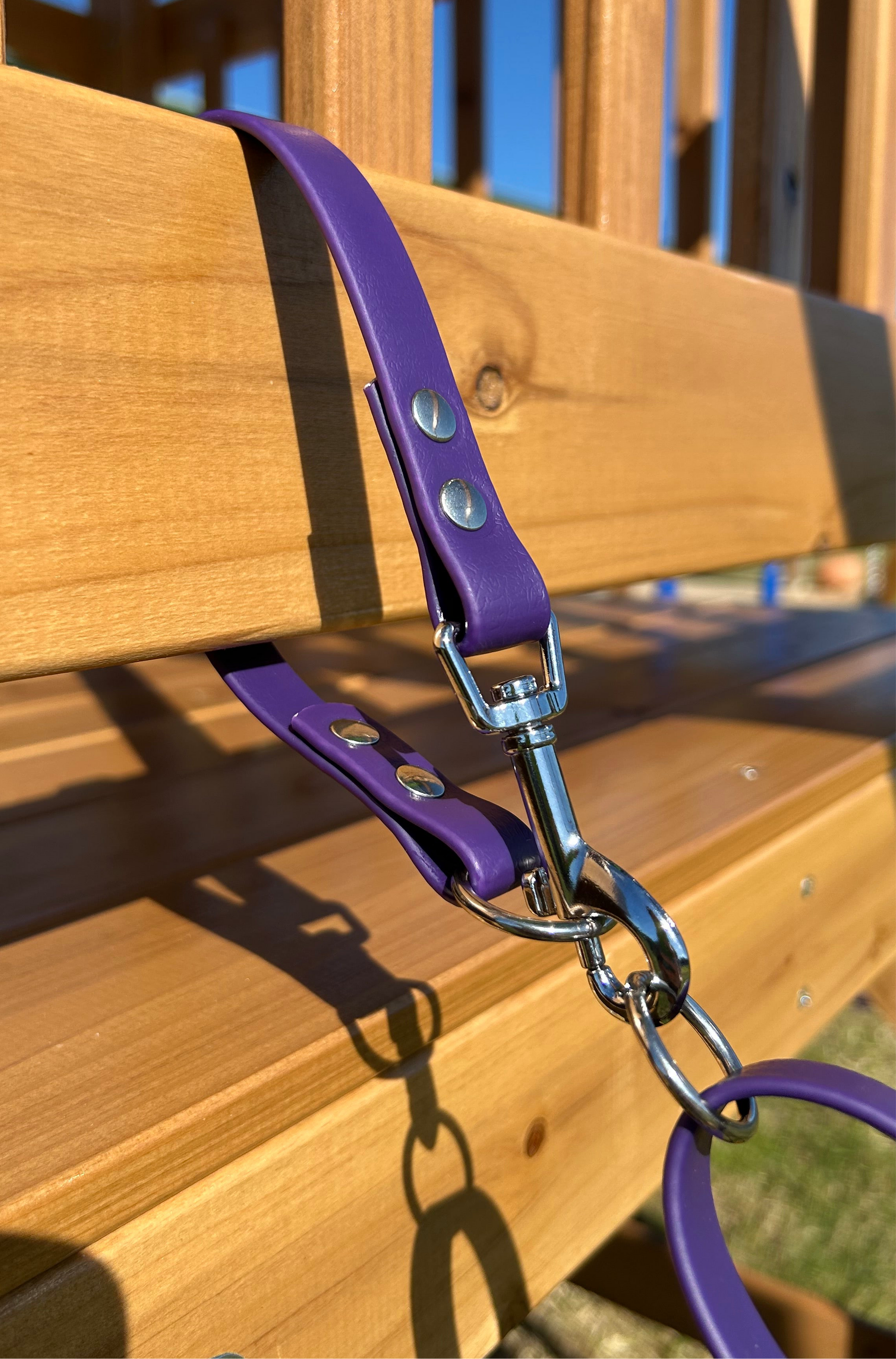 Made from durable, waterproof BioThane, it features a snap hook on one end and an O-ring on the other, designed as an extension to clip around posts, fences, or rails in seconds.