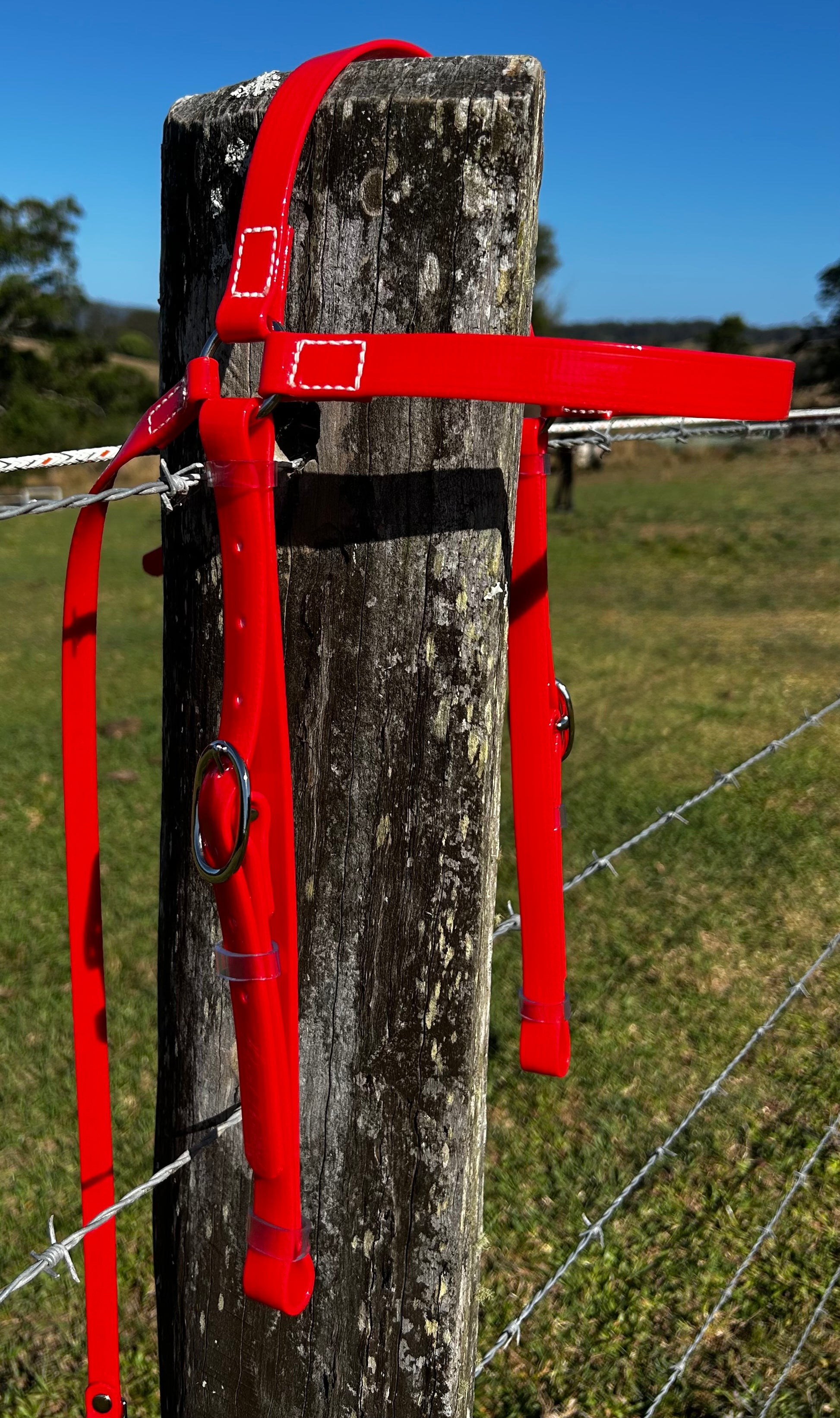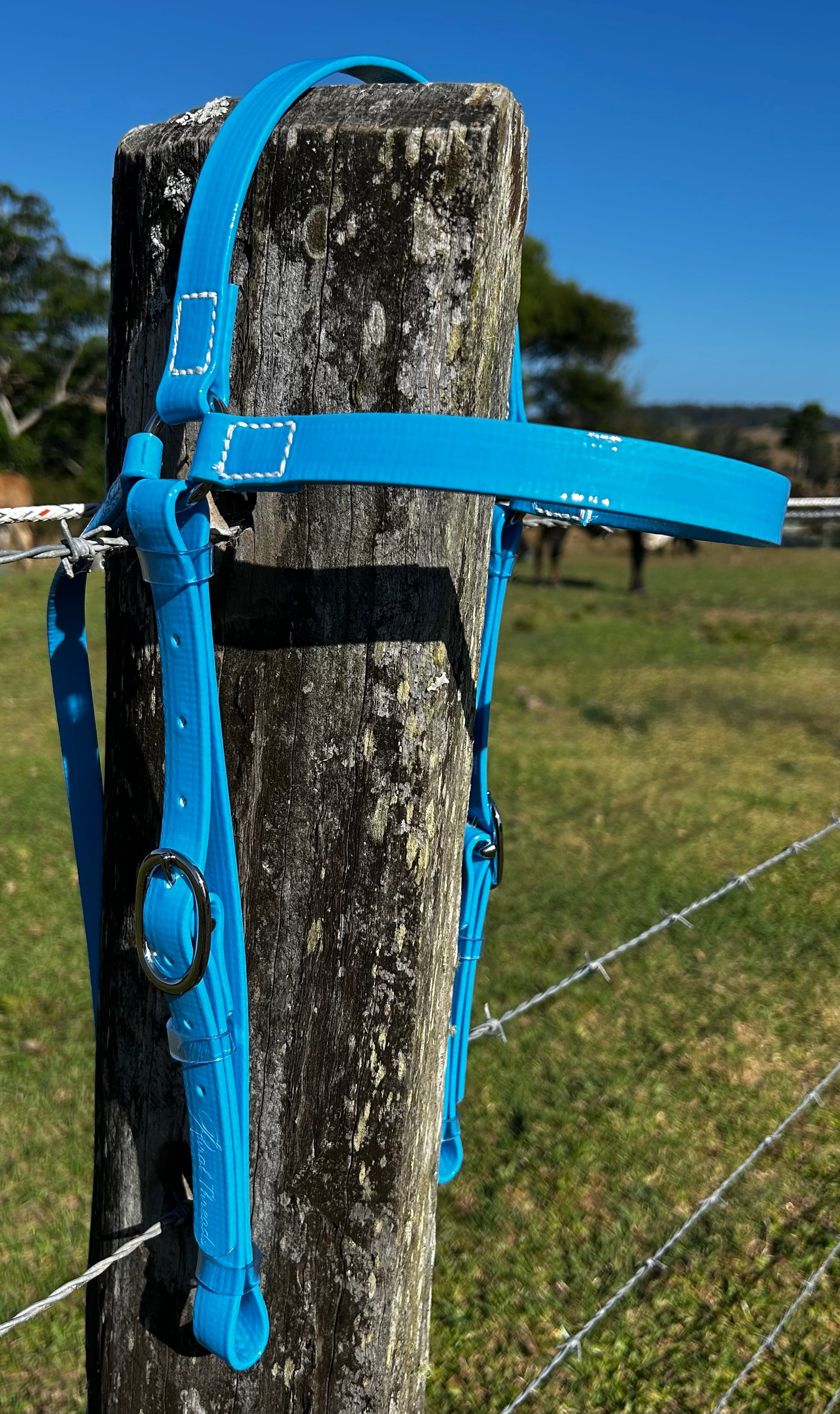 Add a pop of colour and durability to your tack collection with our handmade PVC Webbing Barcoo Bridles.